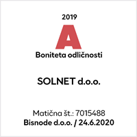 Izmed mnogih ponudnikov smo izbrali SOLNET predvsem zaradi strokovnosti, fleksibilnosti, ter vrhunski kvaliteti ponujenih materialov glede na ponujeno ceno.